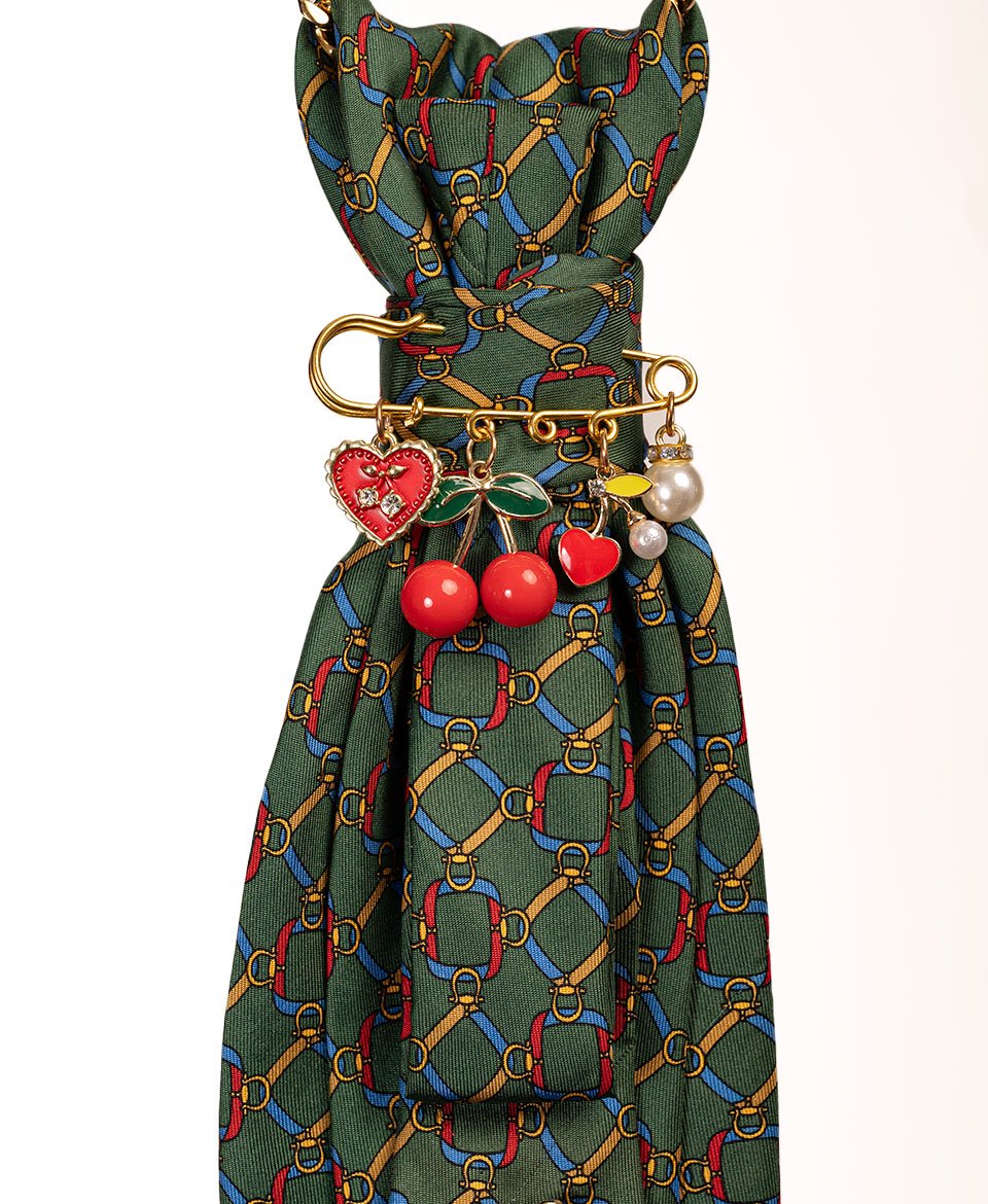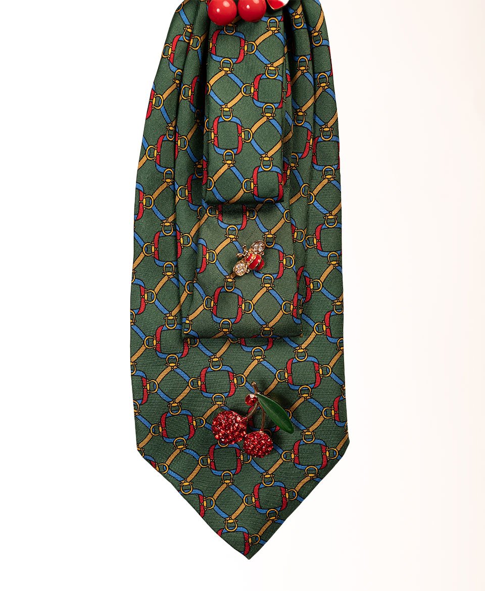 L’élégance rétro réinventée. Cette cravate verte s’illumine de breloques cerises rouge vif pour un style vintage ludique et sophistiqué.