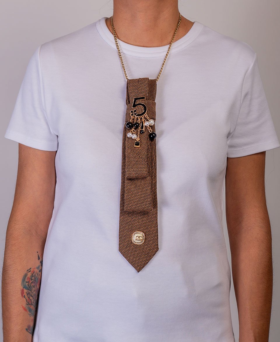 Le luxe iconique réinventé en cravate-bijou. Cette pièce sophistiquée célèbre l’élégance intemporelle avec un twist moderne et audacieux.